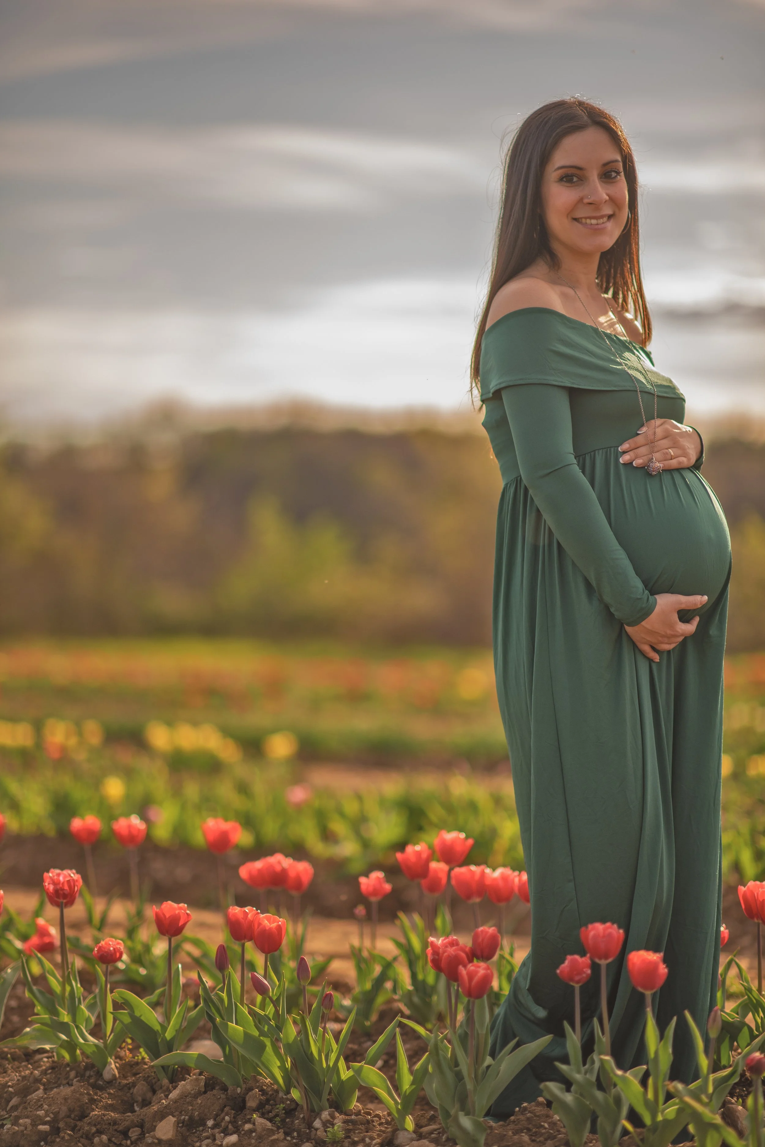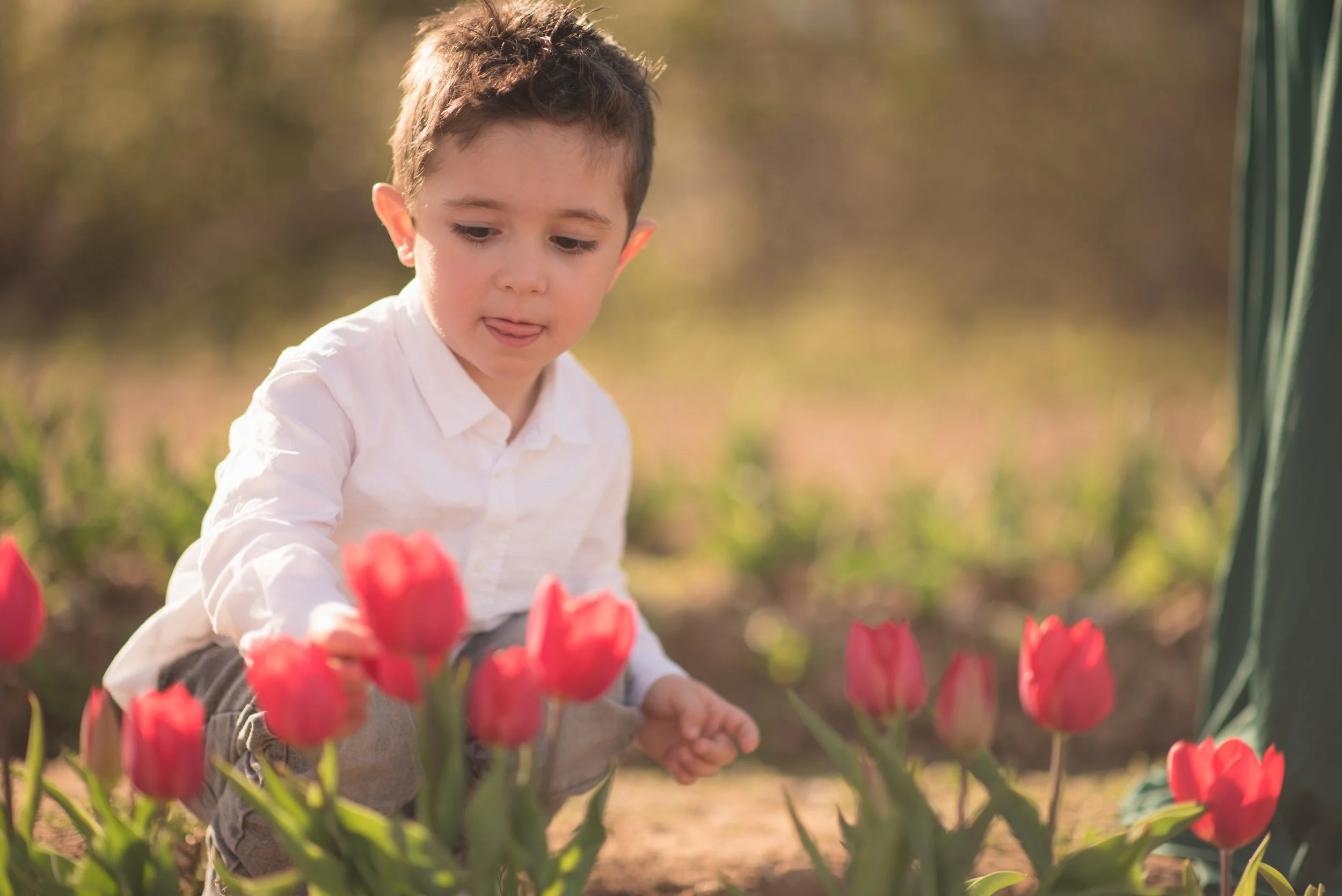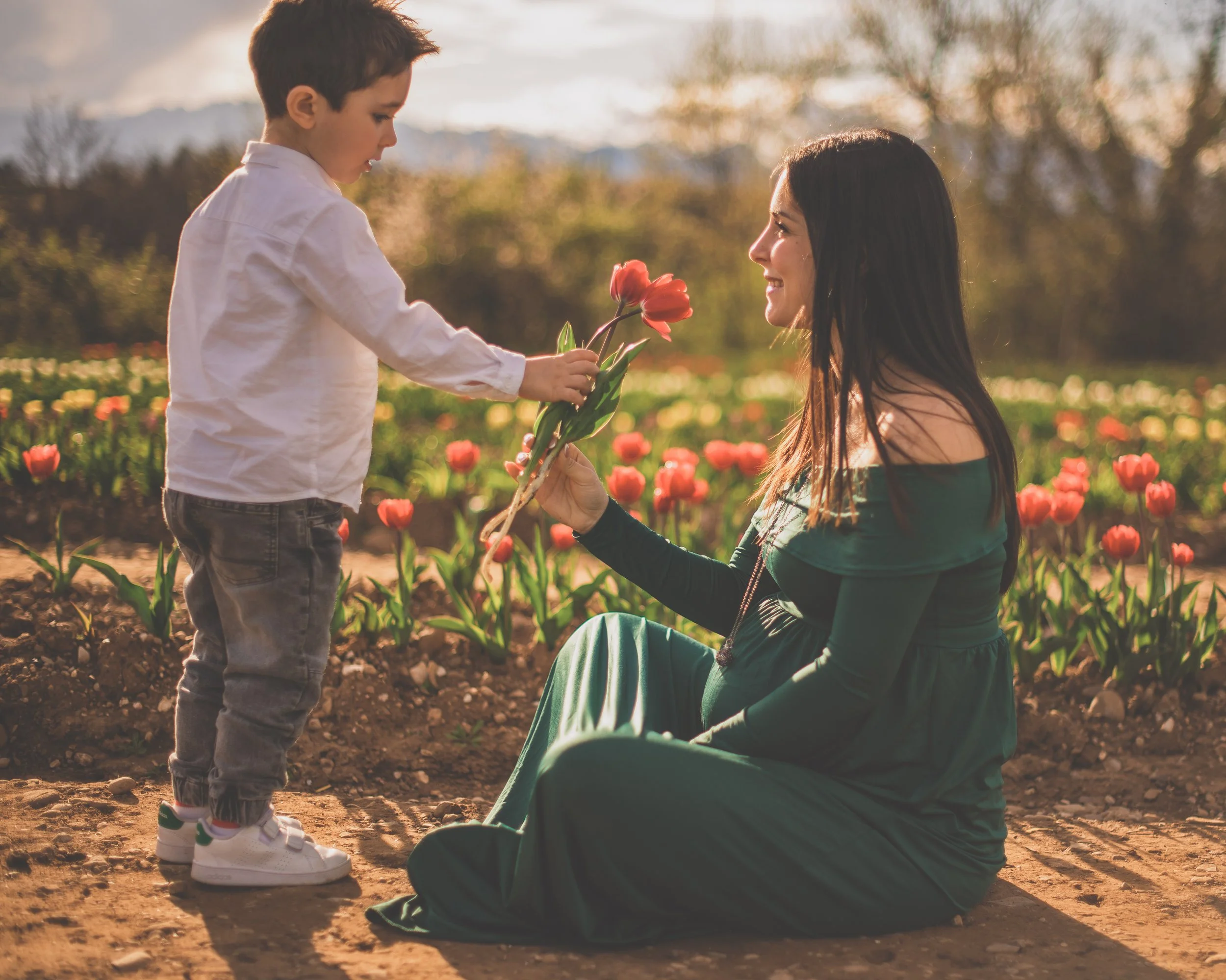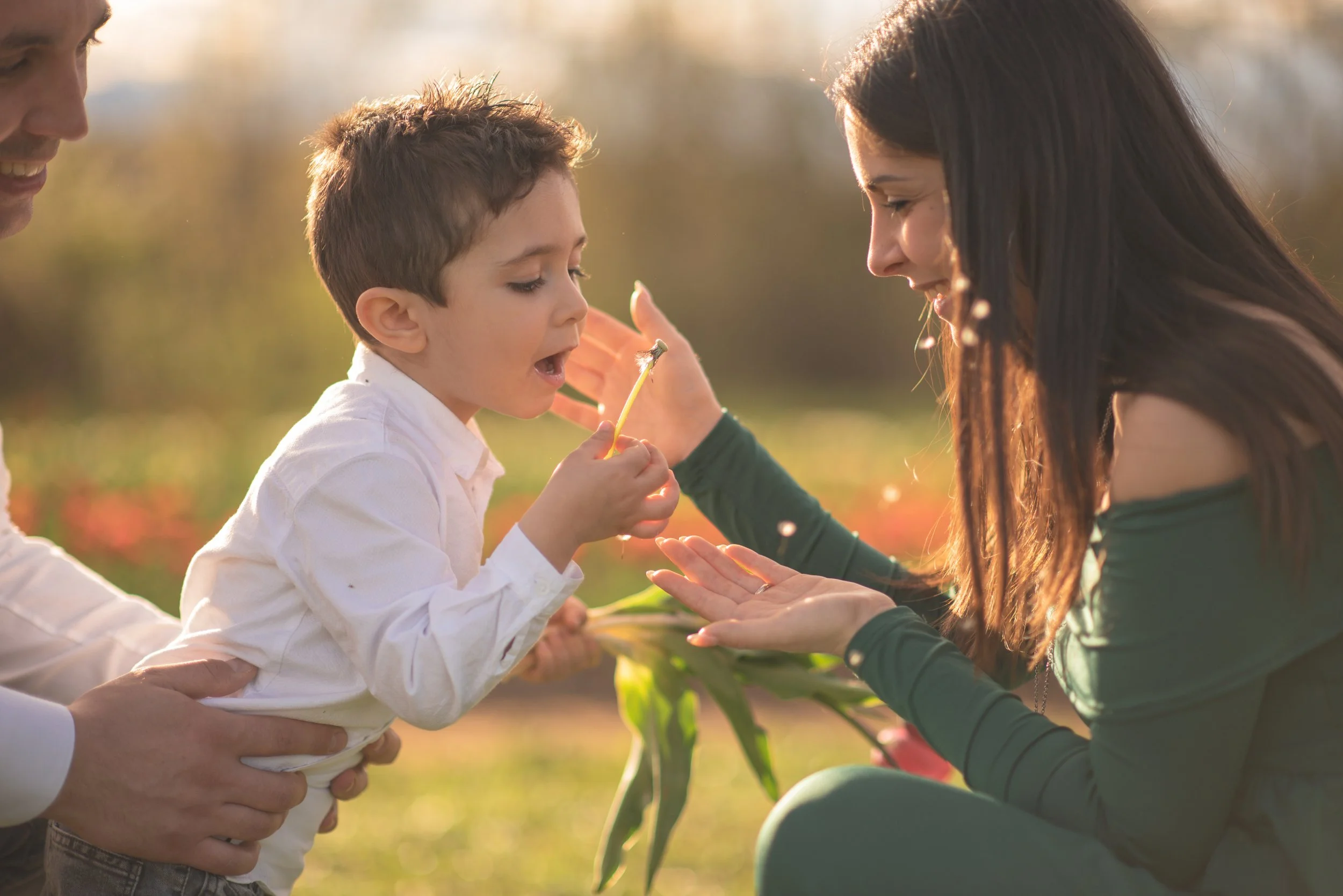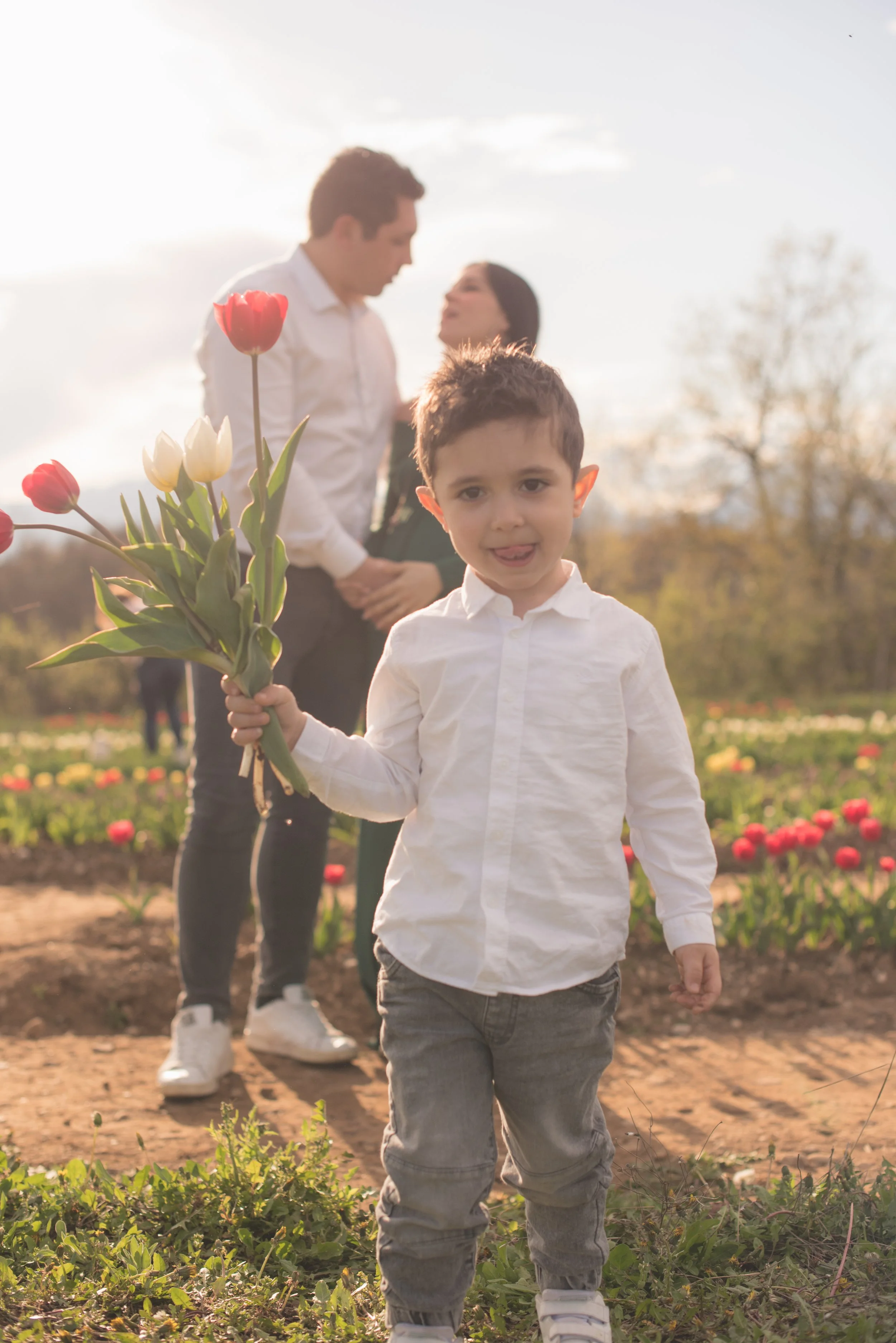 Una famiglia e un prato pieno di risate ai tulipani